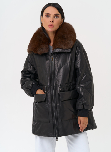 Утепленная кожаная куртка с песцом