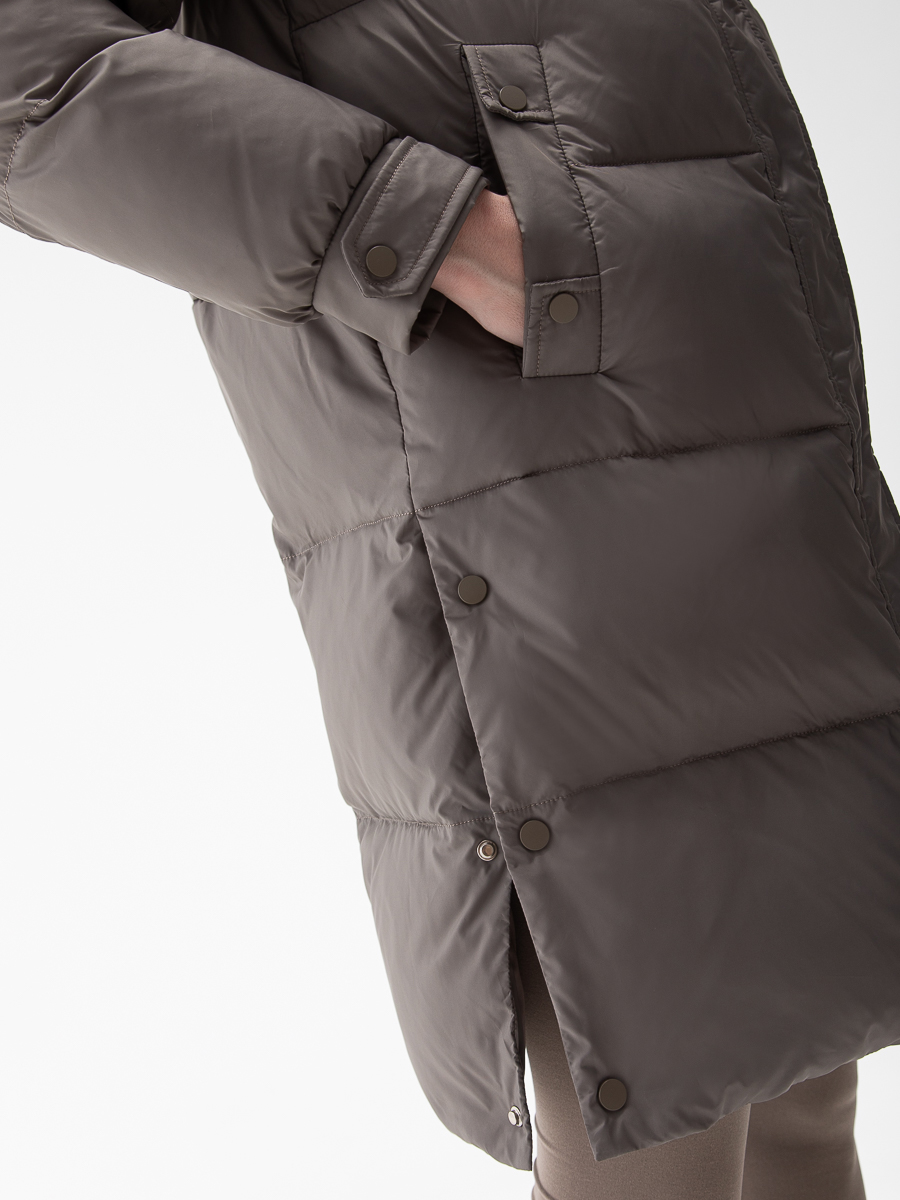 Крой воротника - съёмный капюшон, отделка енот