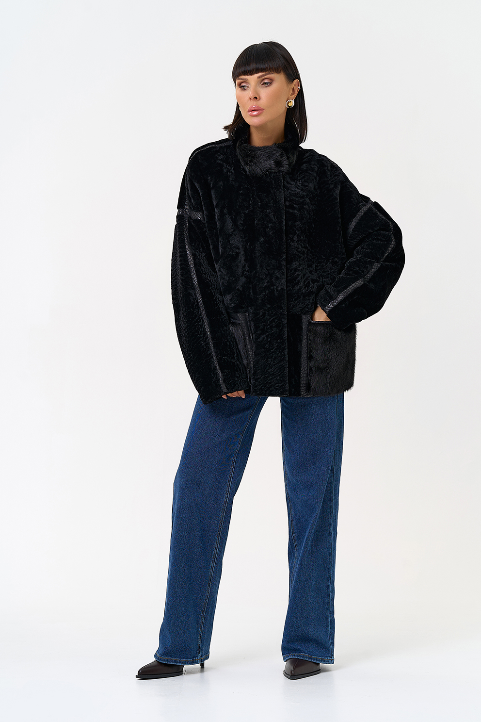 Фасон кармана - накладной, отделка норка