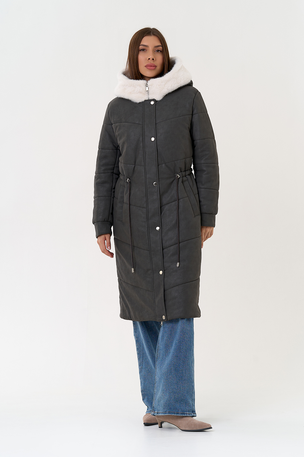 Отделка воротника - эко мех, цвет белый