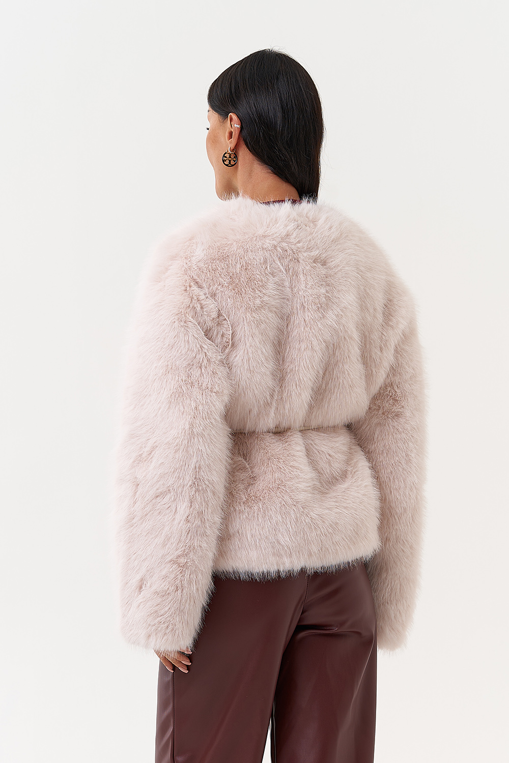 Фасон - прямой Длина изделия - 60 см Цвет - розовый (персиковый) Материал - экомех Состав полотна - полиэстер 100% Подкладка - полиэстер 100% Вид застежки -крючки, пояс Вид ворота - V-образный Фасон рукава - спущенное плечо, длинный |